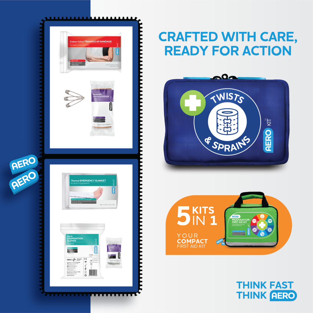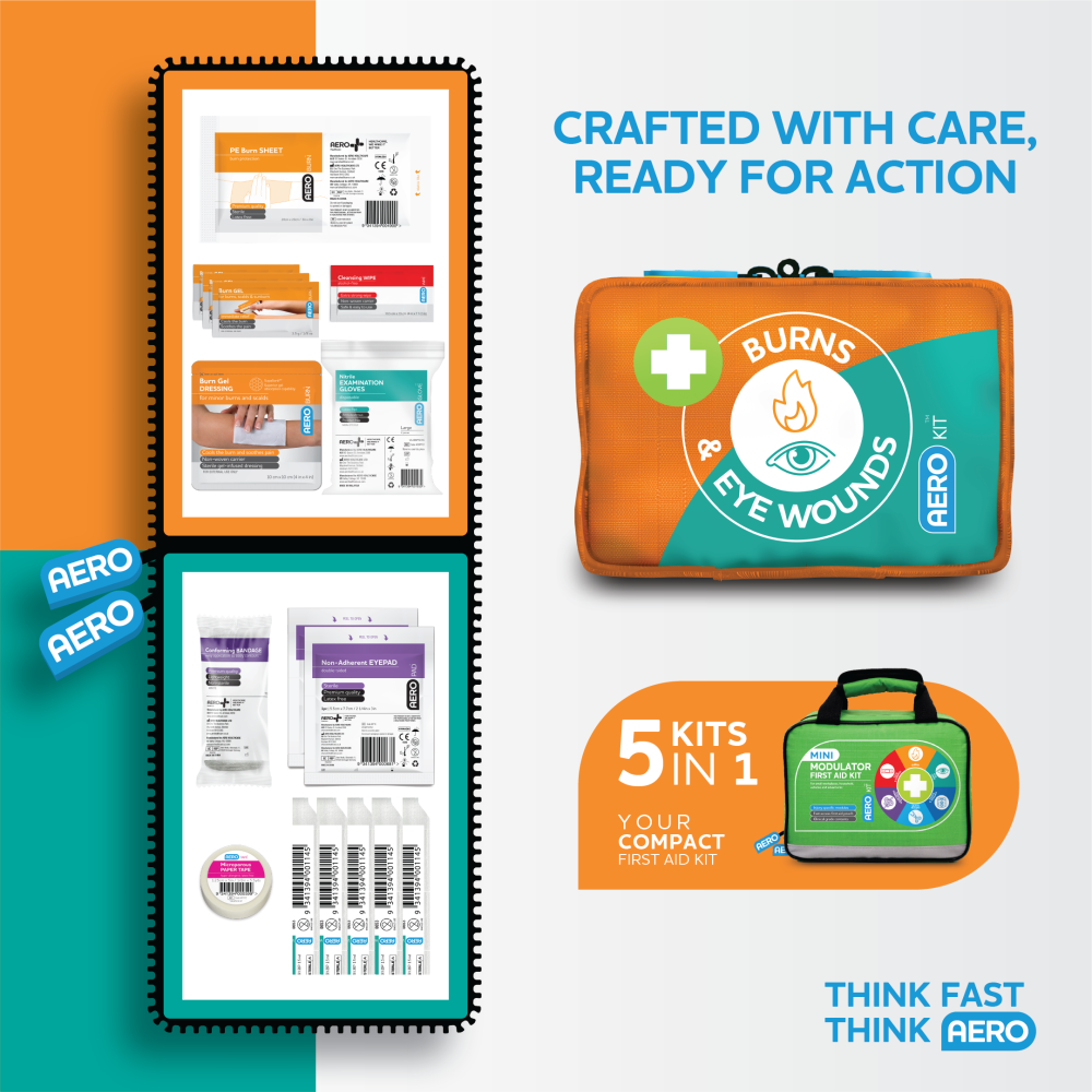 The AeroKit™ Mini Modulator First Aid Kit is ideal for small workplaces, household, vehicle, and adventure use. This kit contains essential items for the treatment of burns and eye wounds, twists and sprains, stings and snakebites and cuts and scrapes! Be prepared for an emergency with your AeroKit™ Mini Modulator with the ability to replace individual modules.