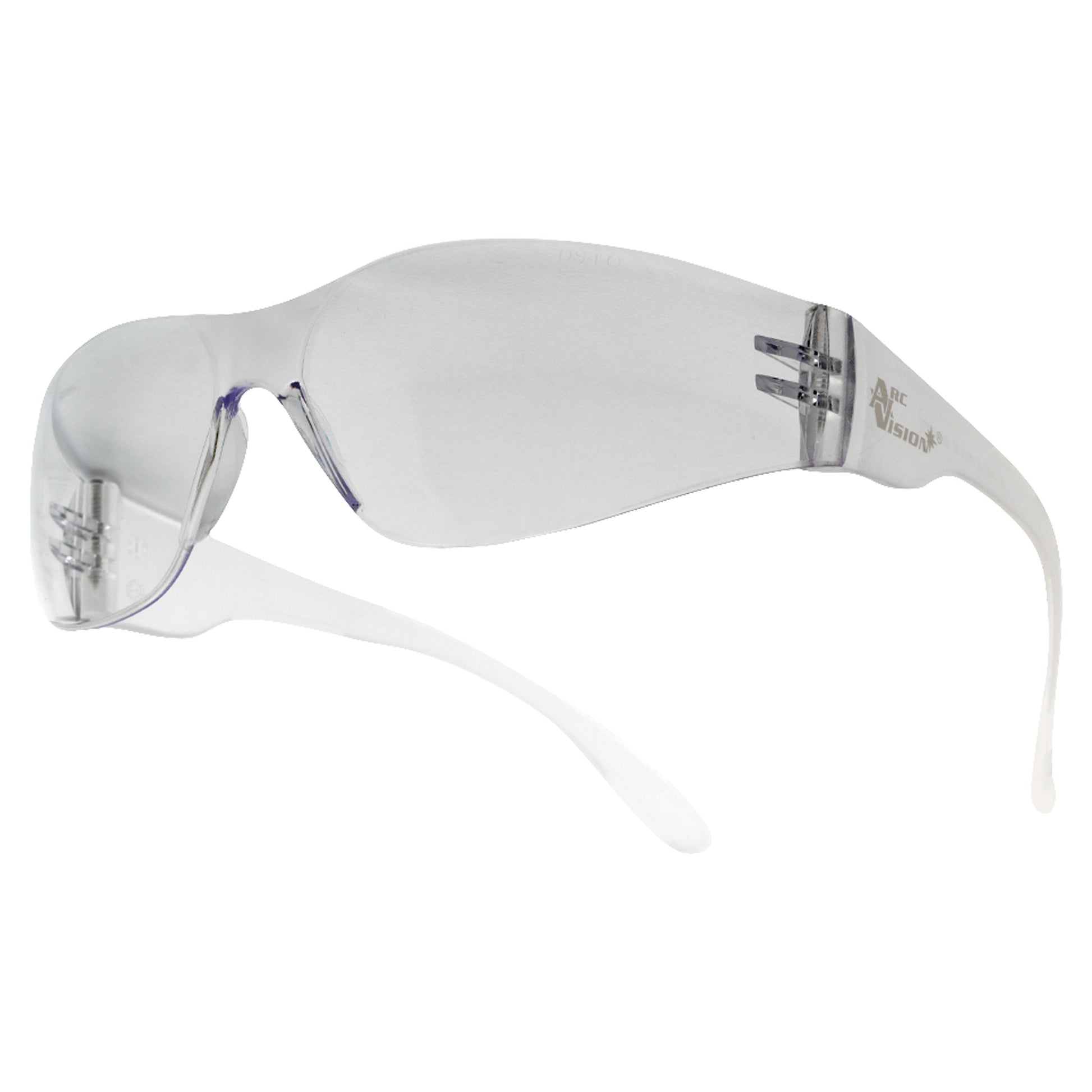 The Arc Vision Glasses are made from a hard coated polycarbonate non-reflective lens. This is used for protection against particles and splashes. The Medium impact, anti-fog and UV-treated lens is for use in various conditions.